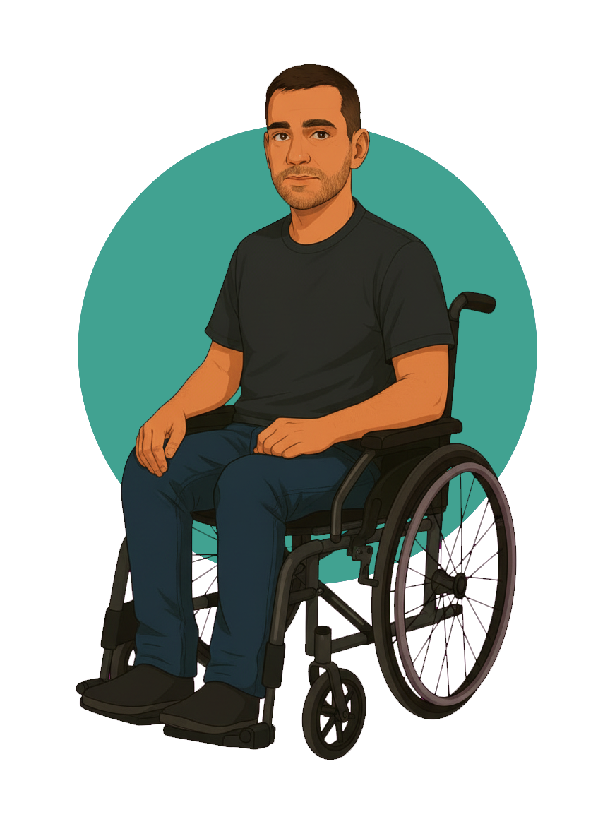 Thomas, 40 ans, vit seul dans un studio en rez-de-chaussée, au centre-ville de Villiers-sur-Marne, un logement adapté à sa situation de paraplégie. Son espace, bien que modeste, est pratique : il dispose d’un petit jardin, un havre de paix où il aime passer du temps. Après une période de chômage, il a su rebondir en créant sa propre entreprise dans le domaine du handicap, une activité qui correspond à ses valeurs et à ses besoins.